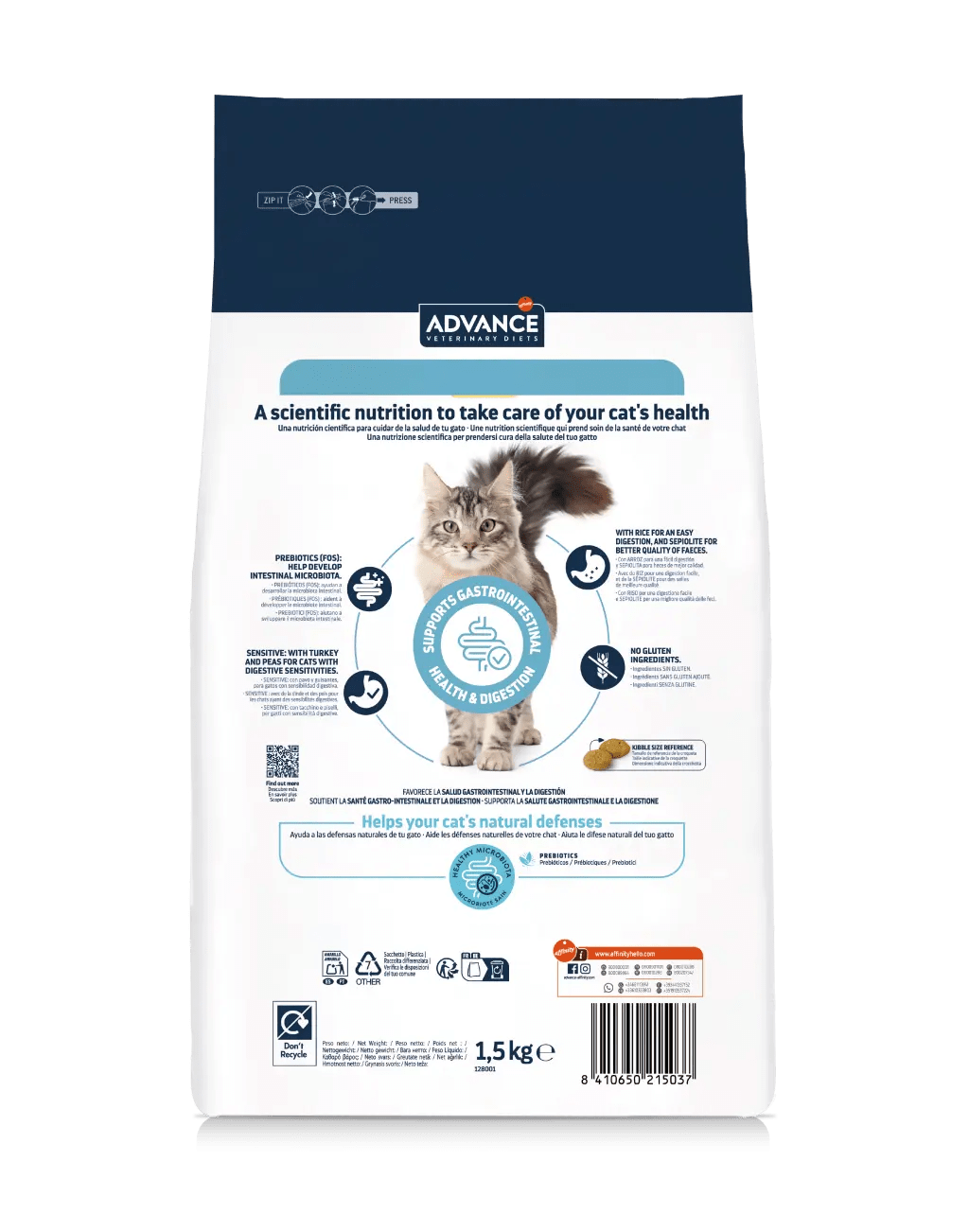 ADVANCE VETERINARY DIETS GASTROENTERIC SENSITIVE es un alimento dietético completo para gatos