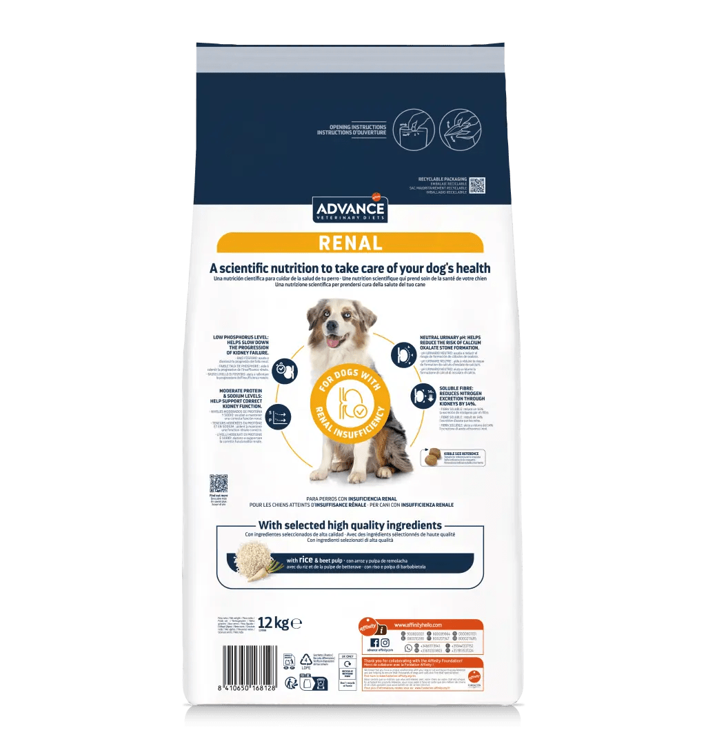 ADVANCE VETERINARY DIETS RENAL un alimento dietético completo para perros adultos, con un nivel
