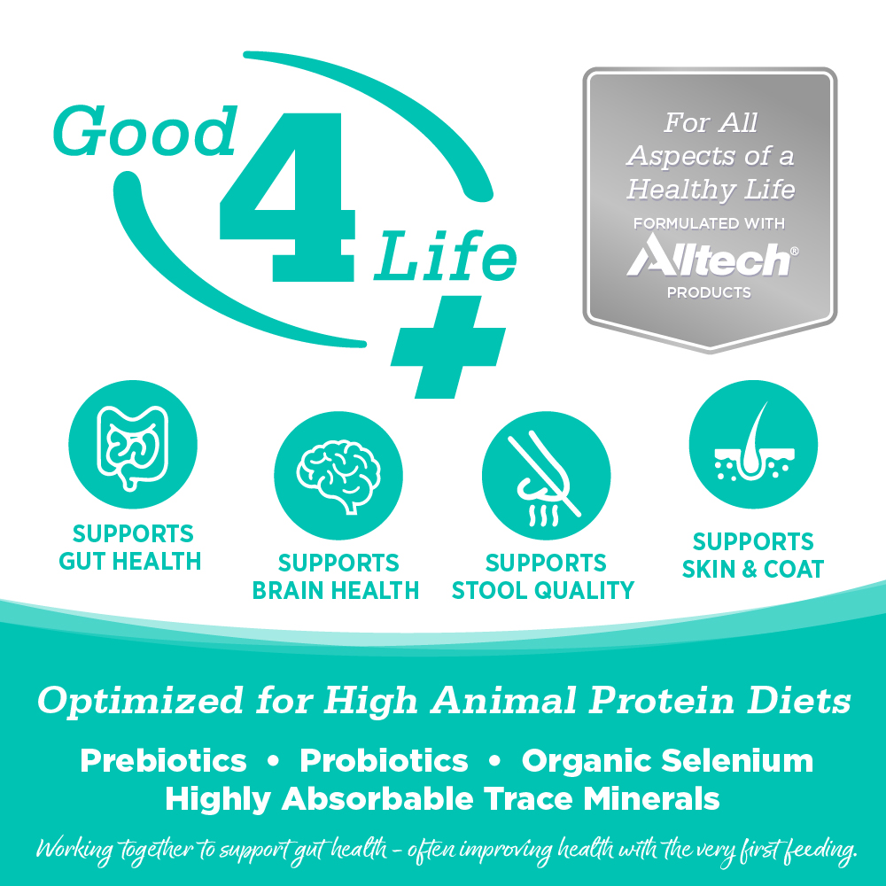 Complementado con taurina, cloruro de colina y metionina DL para apoyar la salud del corazón.